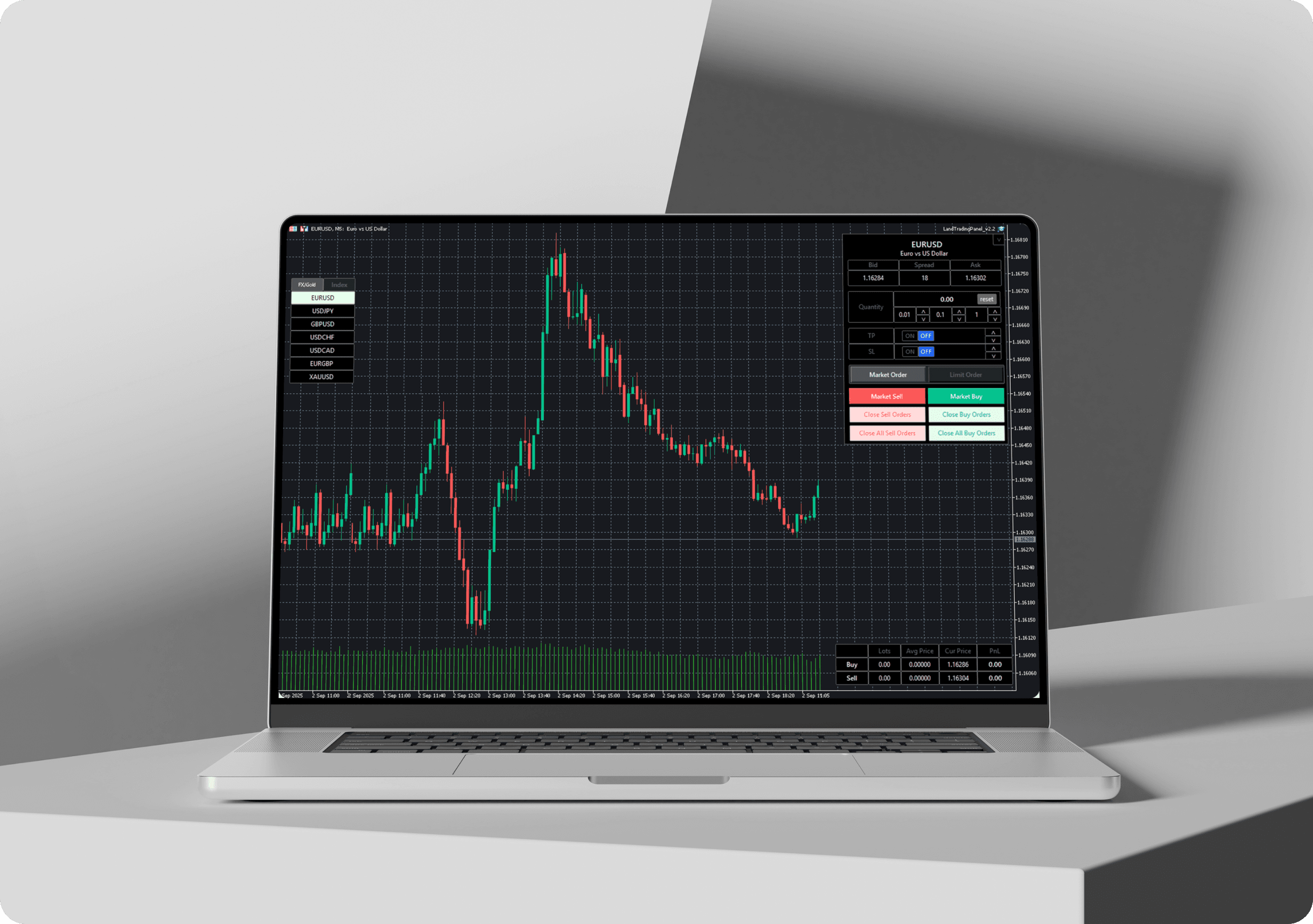 The Land Prime Simple Trading Panel is a tool designed for clients unfamiliar with MT4/MT5, allowing them to trade simply and intuitively. With a user-friendly UI/UX, beginners can start trading with ease. It is fully integrated into Land Prime’s MT4 and MT5 platforms, so no additional installation is required.”